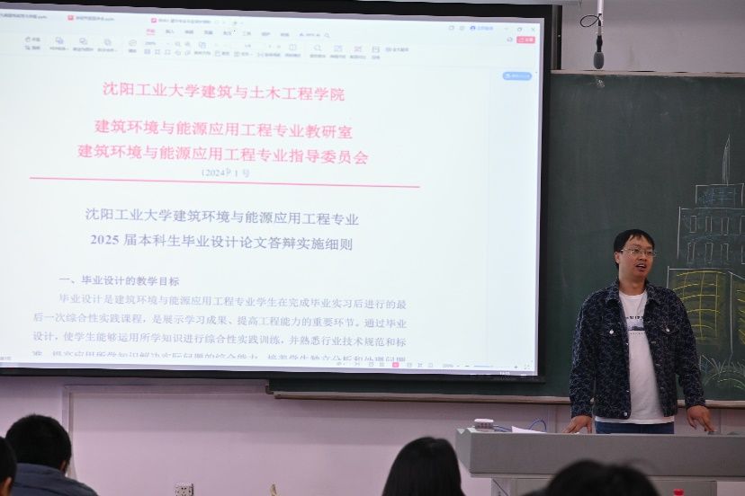 随后,孙成才老师开展了2025届毕业设计开题宣讲会,详细阐述了《2025届建环专业毕业设计答辩实施细则》,并对标工程认证提出了要求与期望,帮助同学们明晰了选题思路和设计方向。